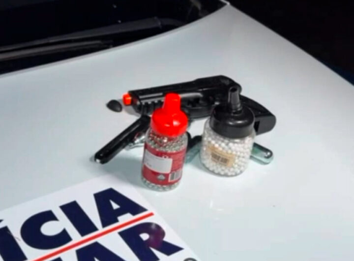 O adolescente de 13 anos foi levado acompanhado da mãe junto com a arma de airsoft e...