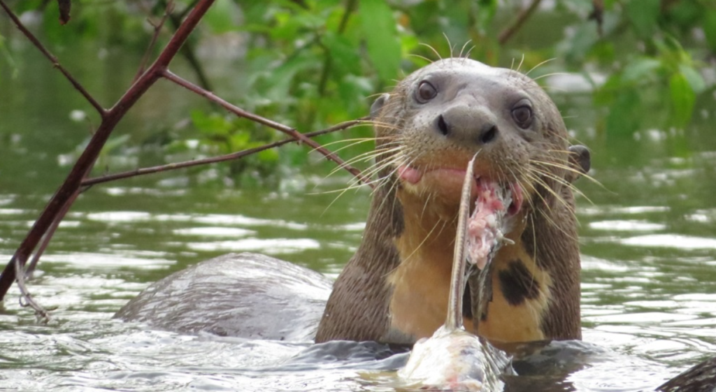 Um grupo de ariranhas (Pteronura brasiliensis), vem sendo registrado com certa frequência pelas equipes ambientais da Axia Energia nas áreas próximas ao reservatório da Usina Hidrelétrica Colíder, no Norte do Mato Grosso. As fotos foram feitas durante as atividades de monitoramento de fauna na região. As ariranhas são o maior espécime de mustelídeo, grupo que incluí lontras, doninhas, furões e texugos.