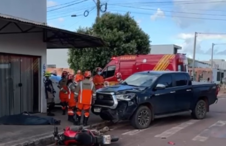 De acordo com informações apuradas no local, câmeras de segurança flagraram o momento em que a motocicleta trafegava em alta velocidade pela rua Geremias Garcia e acabou colidindo com a caminhonete, que seguia pela rua Novo Horizonte.