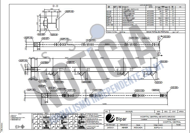 Documentos técnicos indicam que a Bipar foi responsável pelo projeto da estrutura metálica do hospital. Um registro de março de 2021, assinado por um engenheiro, aponta a empresa como autora do projeto estrutural, evidenciando sua participação direta na elaboração técnica de parte da obra.