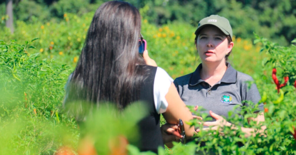 Durante a visita, Leidiane detalhou as características da propriedade e as possibilidades identificadas. “Visitamos uma área de aproximadamente três hectares, com cultivo de pimentas, jabuticaba e frutas cítricas, além de um projeto para implantação de piscicultura. A família também tem interesse em receber visitantes e trabalhar com turismo. Fizemos o levantamento de tudo o que é produzido para entender o que pode ser desenvolvido e integrado ao turismo rural”, explicou.