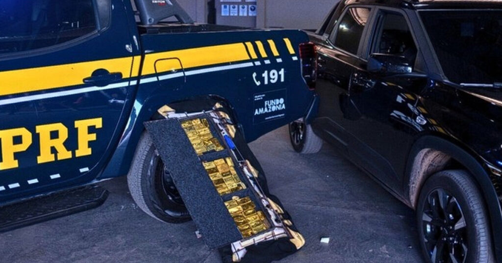 A Polícia Rodoviária Federal (PRF) apreendeu 37 quilos de ouro na tarde desta segunda-feira (20) durante uma fiscalização na BR-174, km 491, em Boa Vista (RR). O ouro estava escondido na carroceria de uma pick-up Montana preta que havia saído de Manaus (AM) com destino a Roraima. No veículo foram encontradas 41 barras de ouro, avaliadas em aproximadamente R$ 25 milhões.